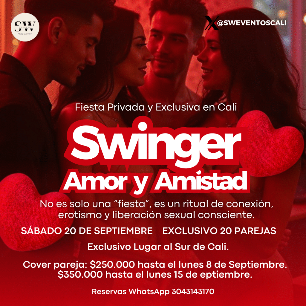 No, como tal no somos un club swinger en Cali, es decir, no tenemos unas instalaciones fijas donde nos puedas encontrar, todas nuestras fiestas las realizamos en distintos lugares previo a un comunicado y con muy pocas parejas.
