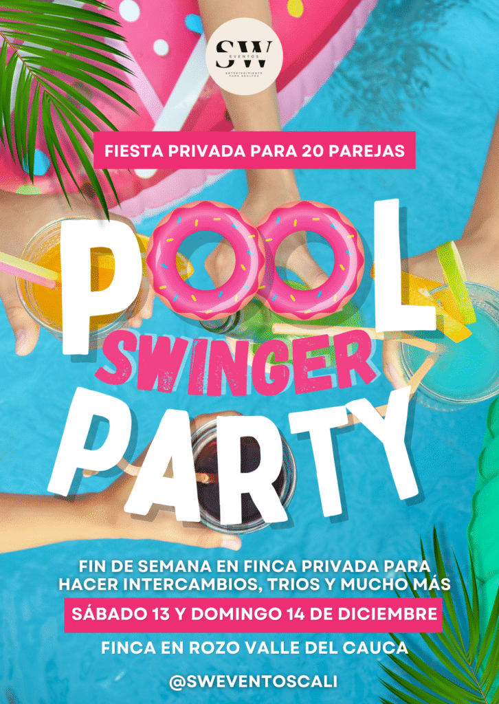 Nuestra próxima fiesta swinger privada en Cali es un Pool Party que se realizará en Diciembre de 2025.